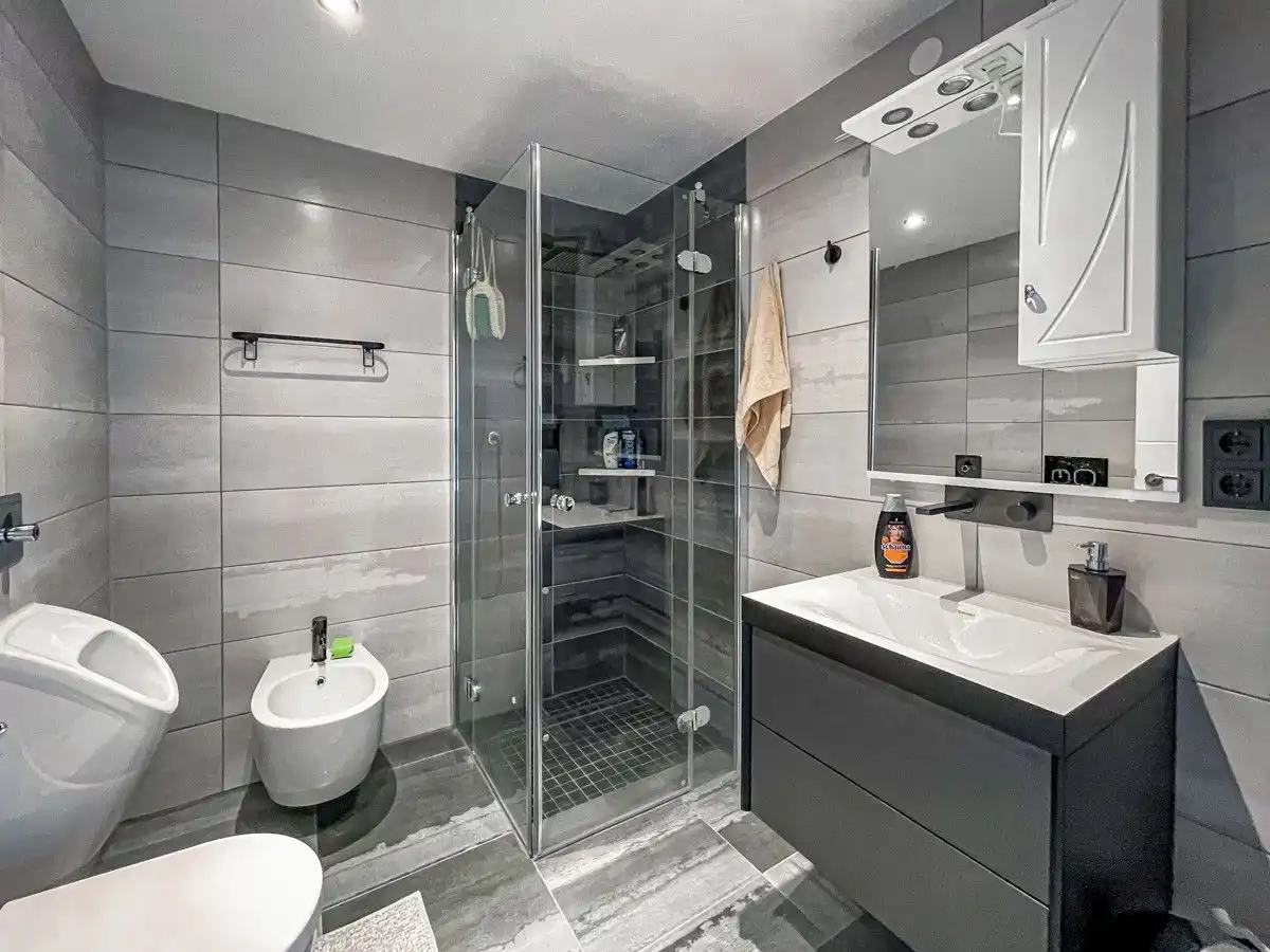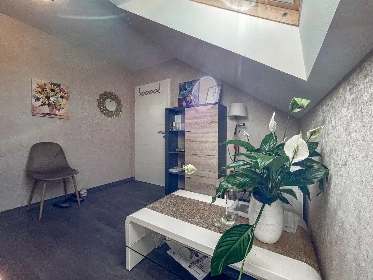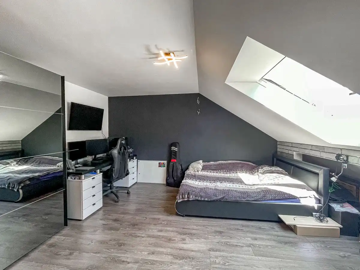 - Sols : carrelage et vinyle - Fenêtres isolantes en plastique et en bois (double vitrage) - 2 cuisines équipées - 3 salles de bain - Hammam - Balcon - Cheminée de chauffage - Chauffage au sol dans toutes les salles de bains - Terrasse couverte sud - abri de jardin - garage attenant à la maison - chauffage central au fioul de 2003 Modernisation - Revêtements de sol 2021 - Portes intérieures 2021 - Porte d'entrée 2021 - Salle de bains: rez-de-chaussée, étage, sous les combles 2021 - Conduites d'eau en acier inoxydable de 2021 - Électricité 2021 - Porte de terrasse RDC 2021 - Terrasse couverte 2021 - Cuisines intégrées RDC et combles 2021 - Fenêtres double vitrage avec cadre PVC (double vitrage) de 2006